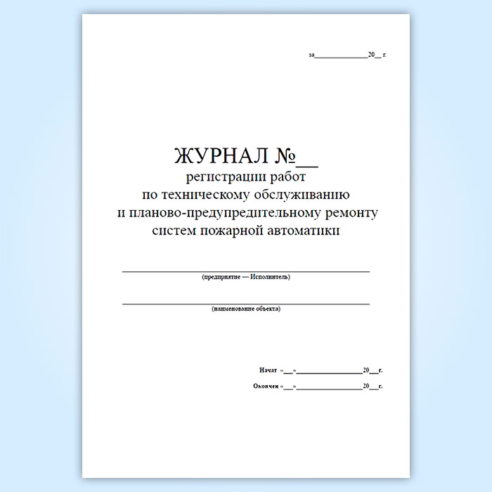 Журнал регистрации работ по техническому обслуживанию и планово-предупредительному ремонту систем пожарной автоматики в Твери купить