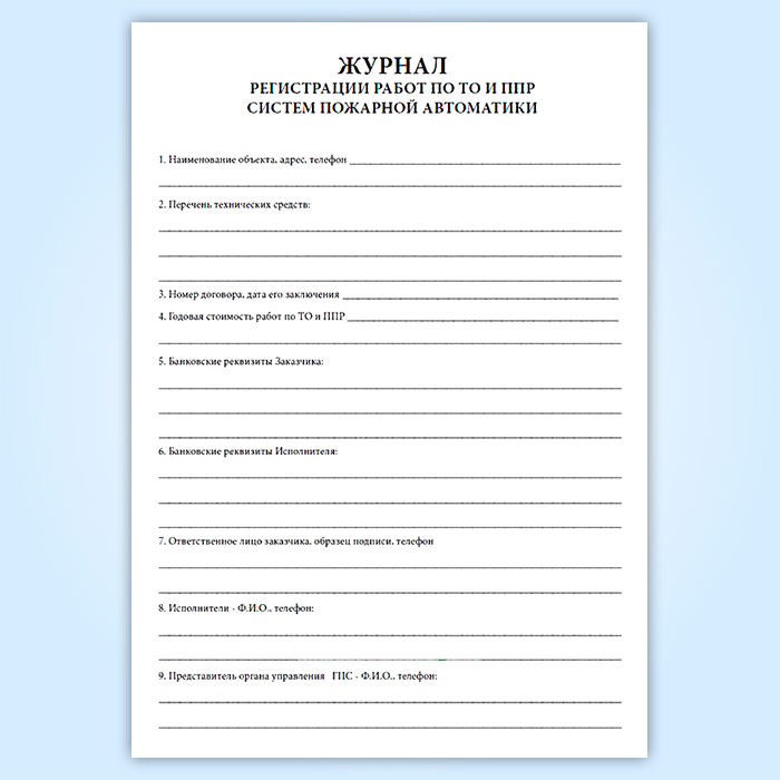 Журнал регистрации работ по ТО и ППР систем пожарной автоматики в Твери купить