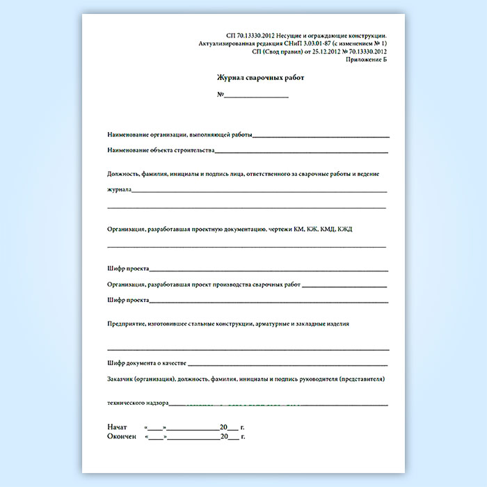 Журнал сварочных работ (приложение к СП 70.13330.2012) в Твери купить