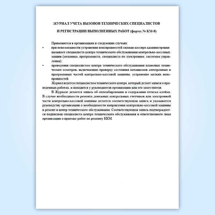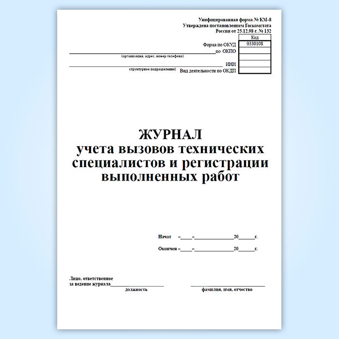 Журнал учета вызовов технических специалистов и регистрации выполненных работ (форма КМ-8) в Твери купить