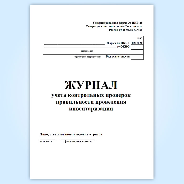 Журнал учета контрольных проверок правильности проведения инвентаризаций (форма ИНВ-25) в Твери купить