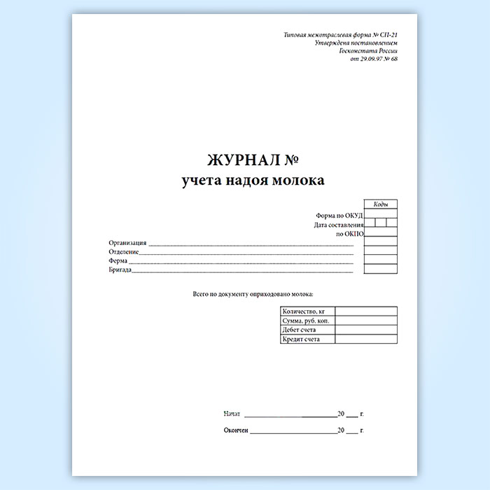 Журнал учета надоя молока (форма № СП-21) в Твери купить
