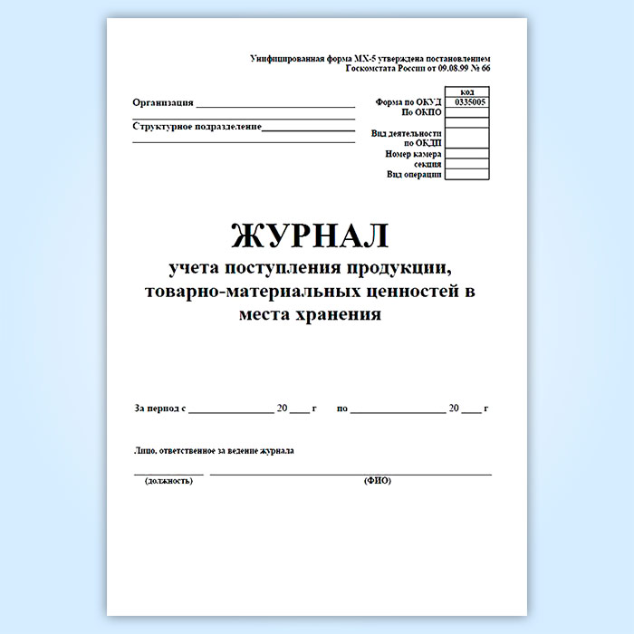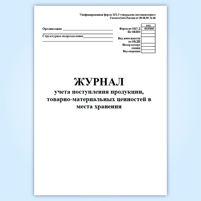 Журнал учета поступления продукции, товарно-материальных ценностей в места хранения (форма МХ-5) в Твери купить