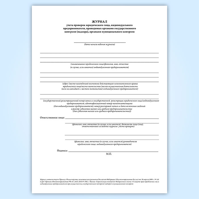 Журнал учета проверок юридического лица, индивидуального предпринимателя, проводимых органами государственного контроля (надзора), органами муниципального контроля (новый) в Твери купить