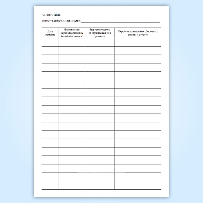 Карта ремонта автотранспортного средства в Твери купить