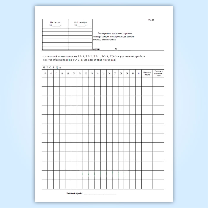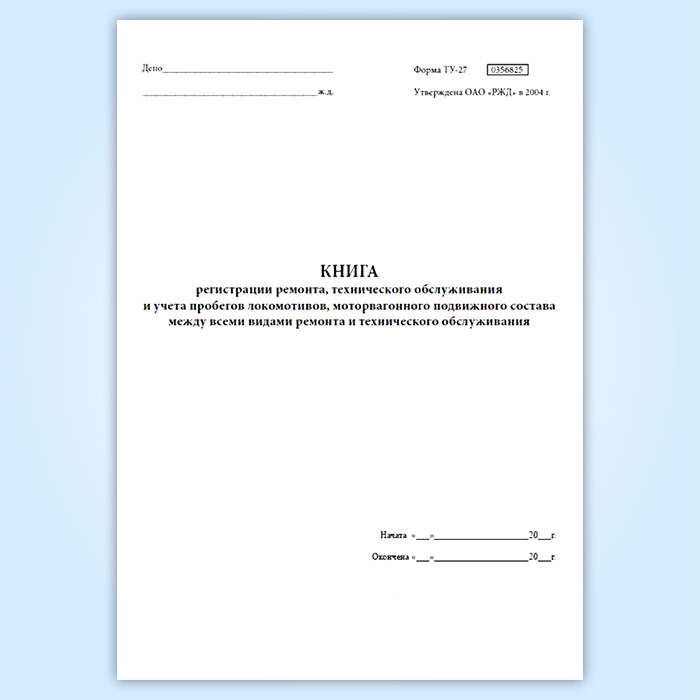 Книга регистрации ремонта, технического обслуживания и учета пробегов локомотивов, моторвагонного подвижного состава между всеми видами ремонта и технического обслуживания (форма ТУ-27) в Твери купить