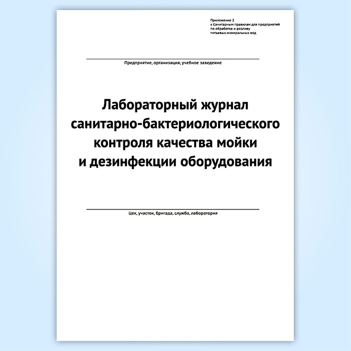 Лабораторный журнал санитарно-бактериологического контроля качества мойки и дезинфекции оборудования (форма 2) в Твери купить