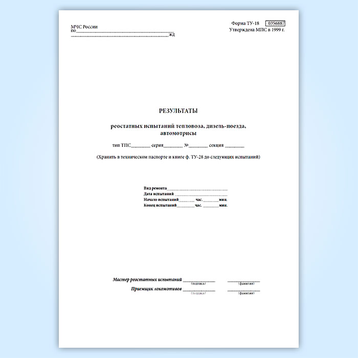 Результаты реостатных испытаний тепловоза, дизель-поезда, автомотрисы (форма ТУ-148) в Твери купить