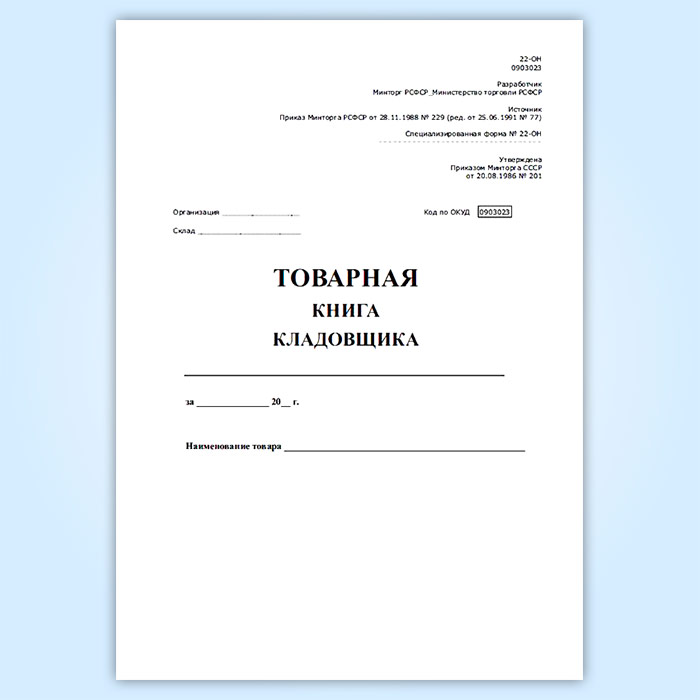 Товарная книга кладовщика. Специализированная (форма № 22-ОН) в Твери купить