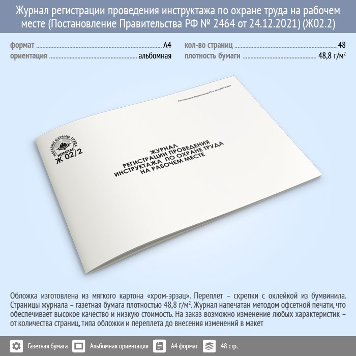 Журнал регистрации проведения инструктажа по охране труда на рабочем месте (Постановление Правительства РФ № 2464 от 24.12.2021) (48 стр., Ж02.2) в Твери купить