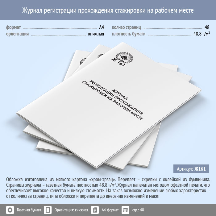 Журнал регистрации прохождения стажировки на рабочем месте (48 стр., Ж161) в Твери купить