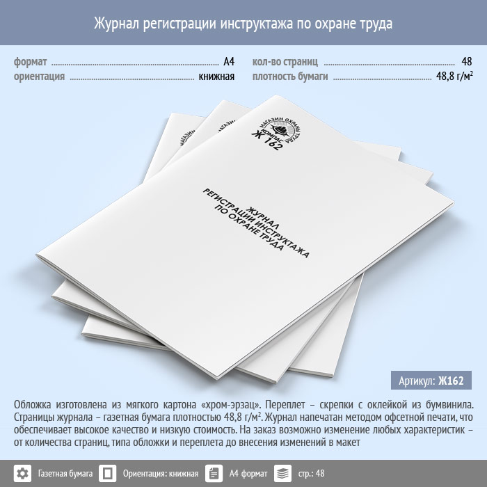 Журнал регистрации инструктажа по охране труда (48 стр., Ж162) в Твери купить