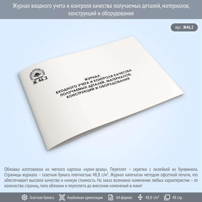 Журнал входного учета и контроля качества получаемых деталей, материалов, конструкций и оборудования (Ж46.2, 48 стр.) в Твери купить