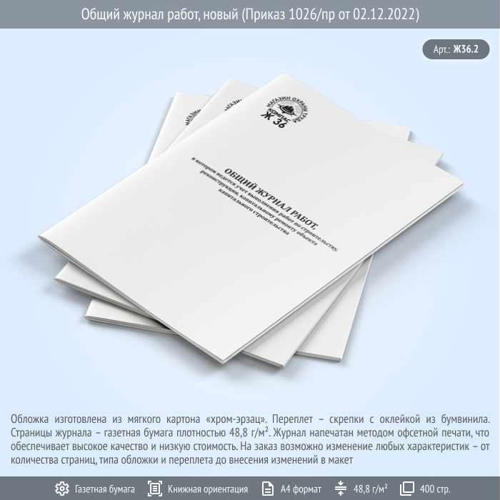 Общий журнал работ, новый (Приказ 1026/пр от 02.12.2022, 400 стр., Ж36.2) в Твери купить