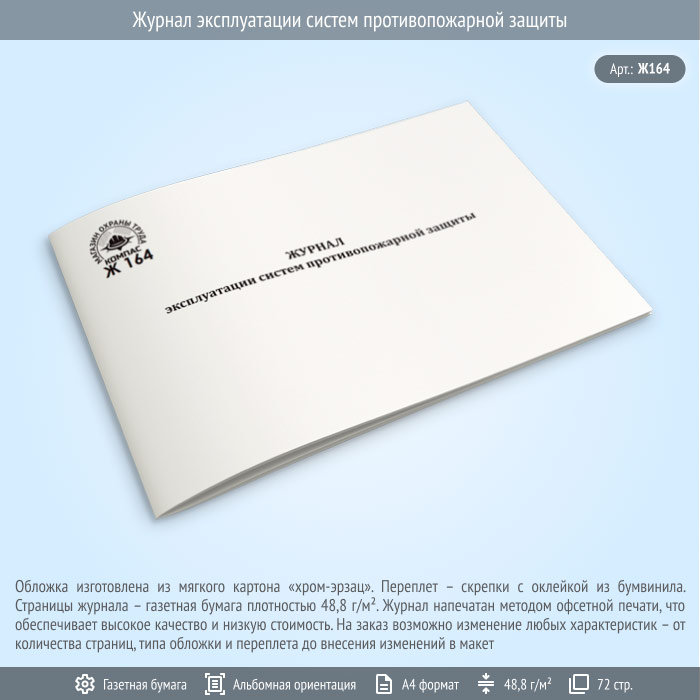 Журнал эксплуатации систем противопожарной защиты (72 стр., Ж164) в Твери купить