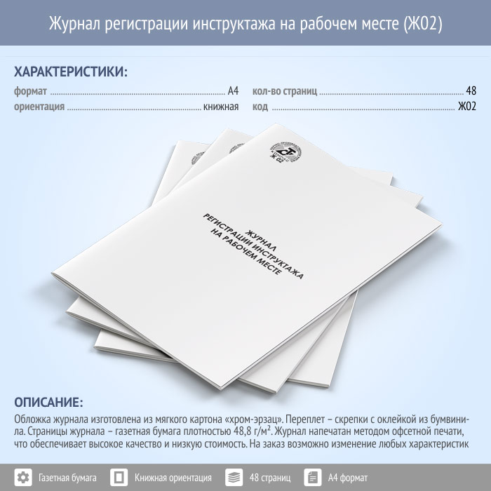 Журнал регистрации инструктажа на рабочем месте (48 стр., Ж02) в Твери купить