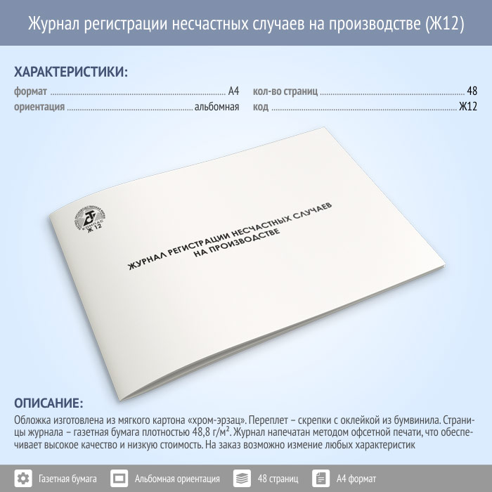 Журнал регистрации несчастных случаев на производстве (48 стр., Ж12) в Твери купить