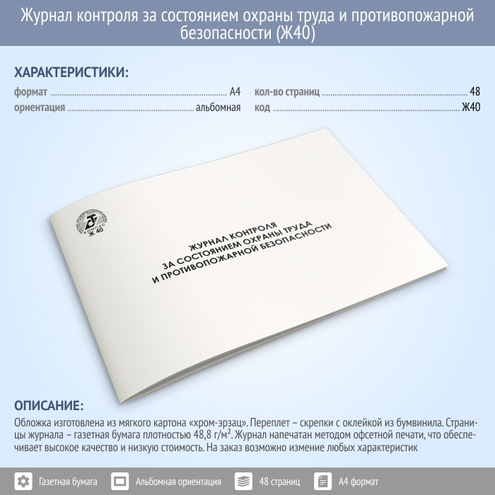 Журнал контроля за состоянием охраны труда и противопожарной безопасности (48 стр., Ж40) в Твери купить