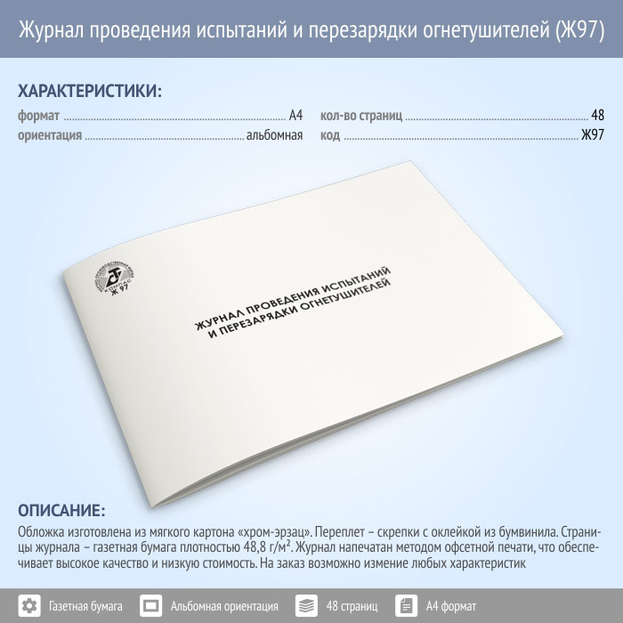 Журнал проведения испытаний и перезарядки огнетушителей (48 стр., Ж97) в Твери купить