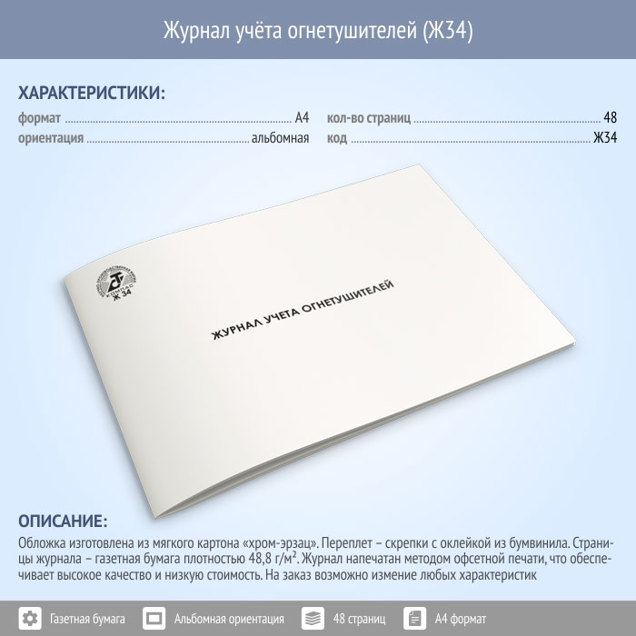 Журнал учета огнетушителей (48 стр., Ж34) в Твери купить