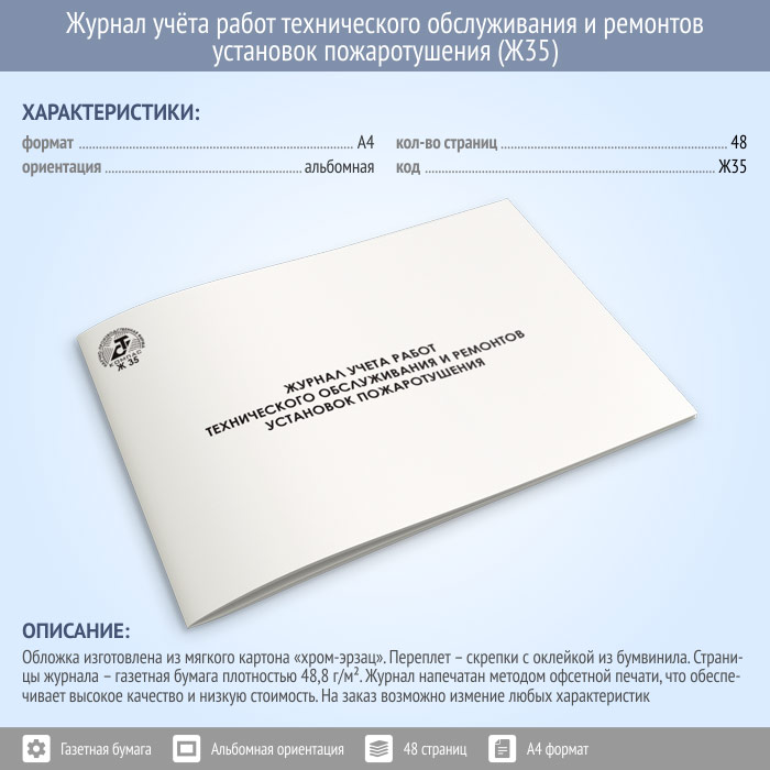 Журнал учета работ технического обслуживания и ремонтов установок пожаротушения (48 стр., Ж35) в Твери купить