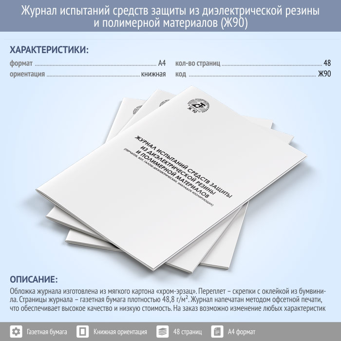 Журнал испытаний средств защиты из диэлектрической резины и полимерных материалов (48 стр., Ж90) в Твери купить