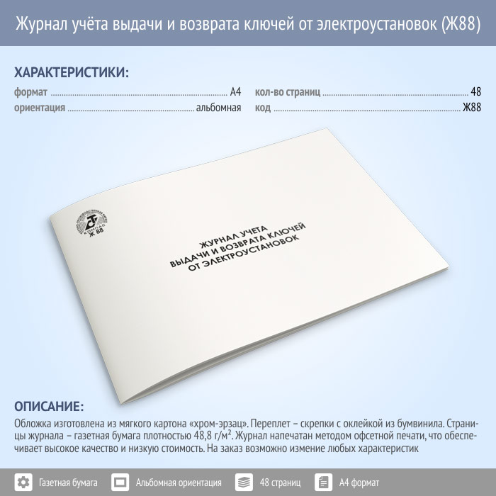 Журнал учета выдачи и возврата ключей от электроустановок (48 стр., Ж88) в Твери купить