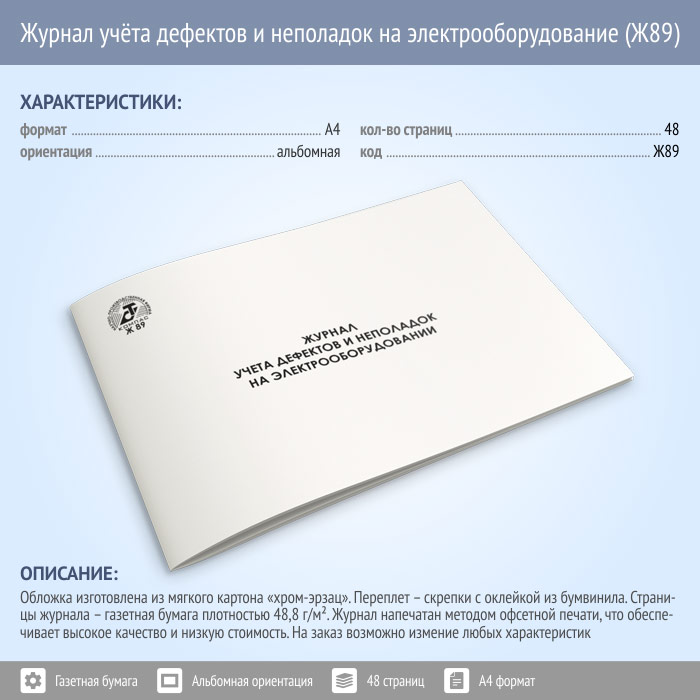 Журнал учета дефектов и неполадок электрооборудования (48 стр., Ж89) в Твери купить