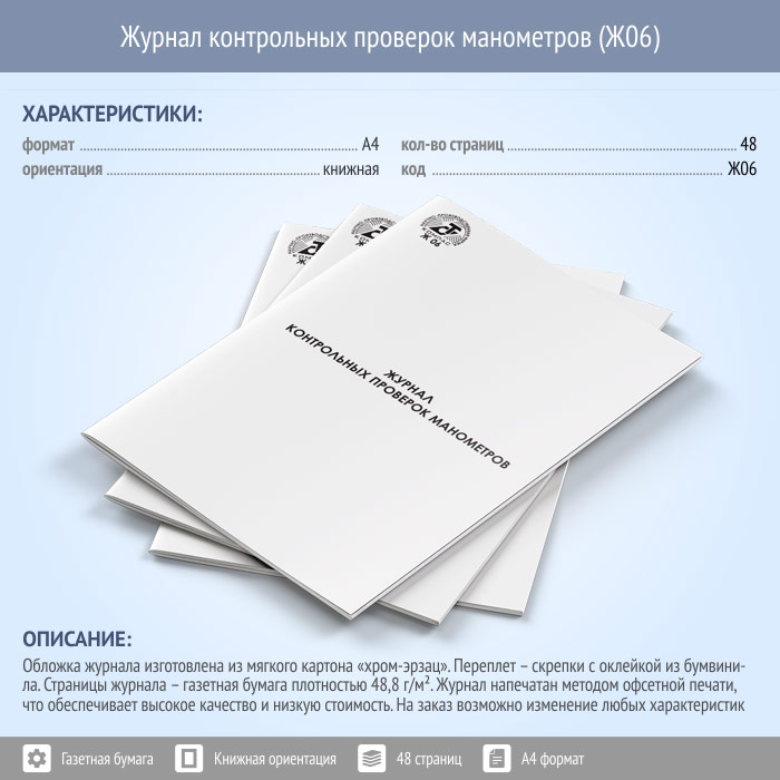 Журнал контрольных проверок манометров (КИП) (48 стр., Ж06) в Твери купить