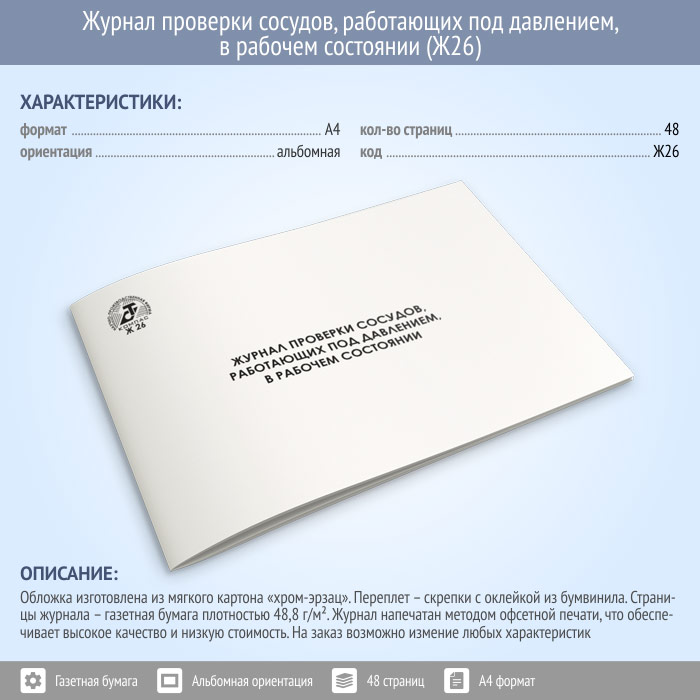 Журнал проверки сосудов, работающих под давлением в рабочем состоянии (48 стр., Ж26) в Твери купить
