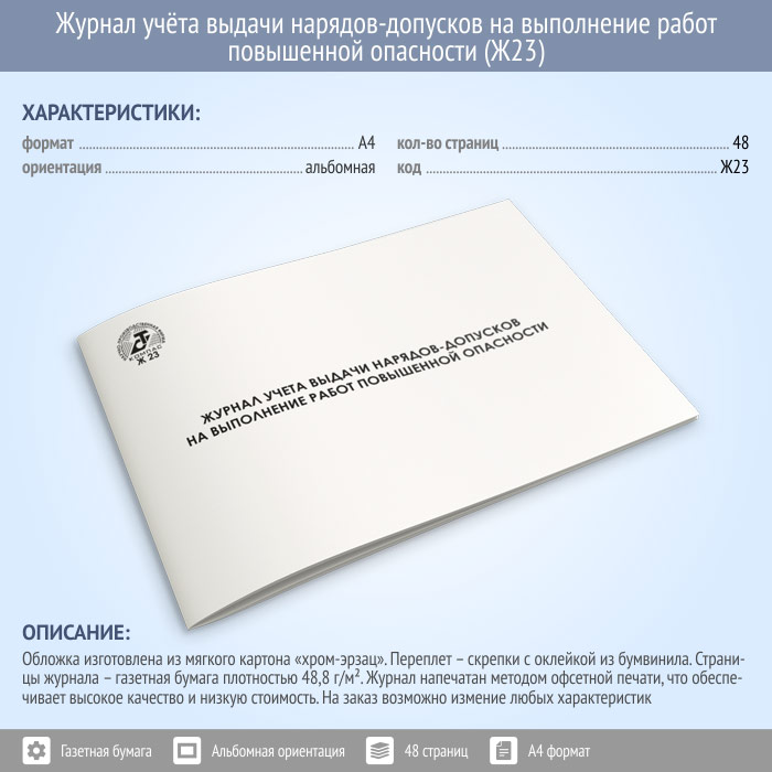 Журнал учета выдачи нарядов-допусков на выполнение работ повышенной опасности (48 стр., Ж23) в Твери купить