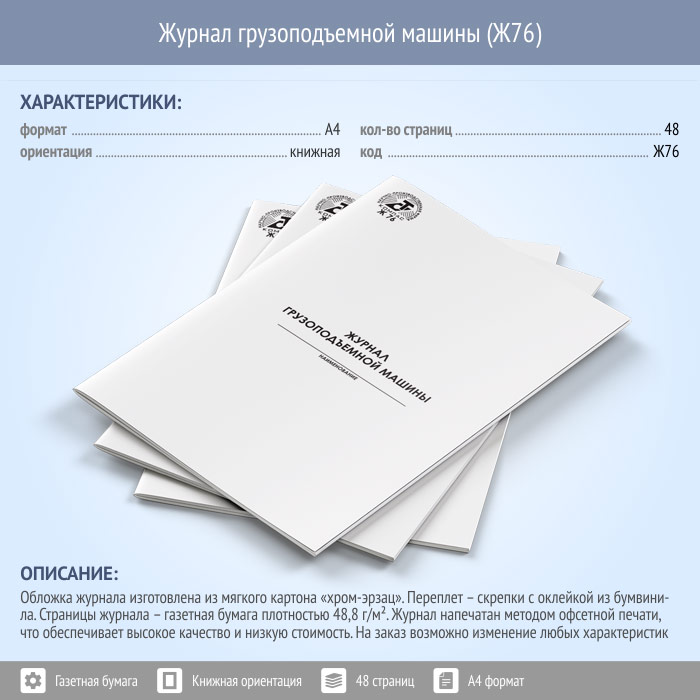 Журнал грузоподъемной машины (48 стр., Ж76) в Твери купить
