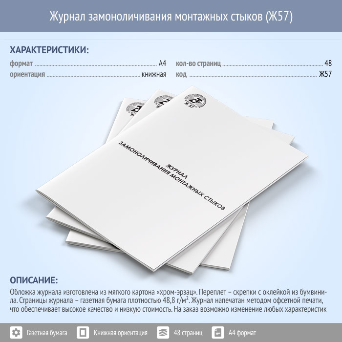 Журнал замоноличивания монтажных стыков (48 стр., Ж57) в Твери купить