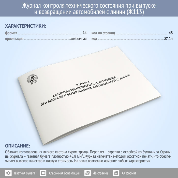 Журнал контроля технического состояния при выпуске и возвращении автомобилей с линии (48 стр., Ж113) в Твери купить