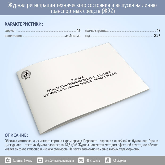 Журнал регистрации технического состояния и выпуска на линию транспортных средств (48 стр., Ж92) в Твери купить