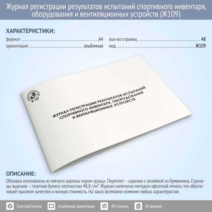 Журнал регистрации результатов испытаний спортивного инвентаря, оборудования и вентиляционных устройств (48 стр., Ж109) в Твери купить