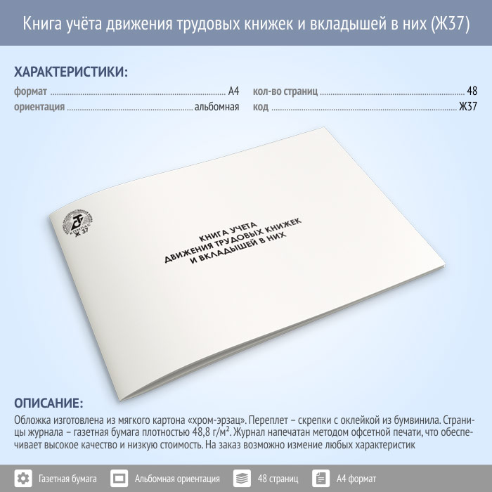 Книга учета движения трудовых книжек и вкладышей в них (48 стр., Ж37) в Твери купить
