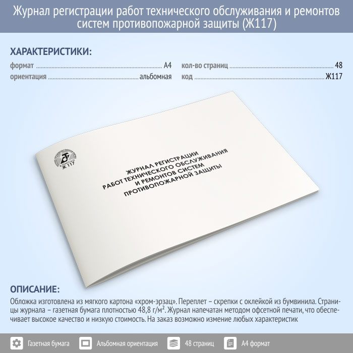 Журнал регистрации работ технического обслуживания и ремонтов систем противопожарной защиты (48 стр., Ж117) в Твери купить