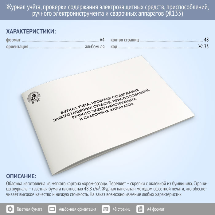 Журнал учета проверки и содержания электрозащитных средств, приспособлений, ручного электроинструмента и сварочных аппаратов (48 стр., Ж133) в Твери купить