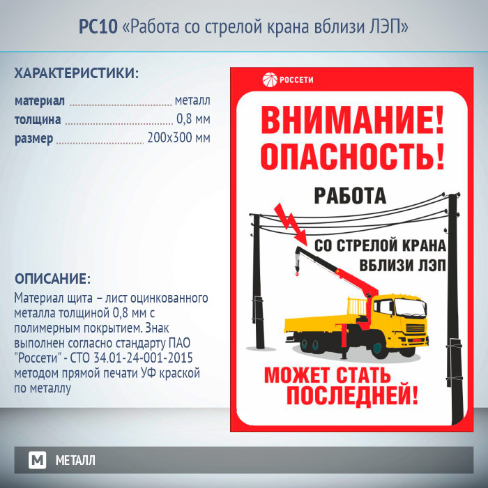 Знак «Работа со стрелой крана вблизи ЛЭП», РС10 (металл, 200х300 мм) в Твери купить