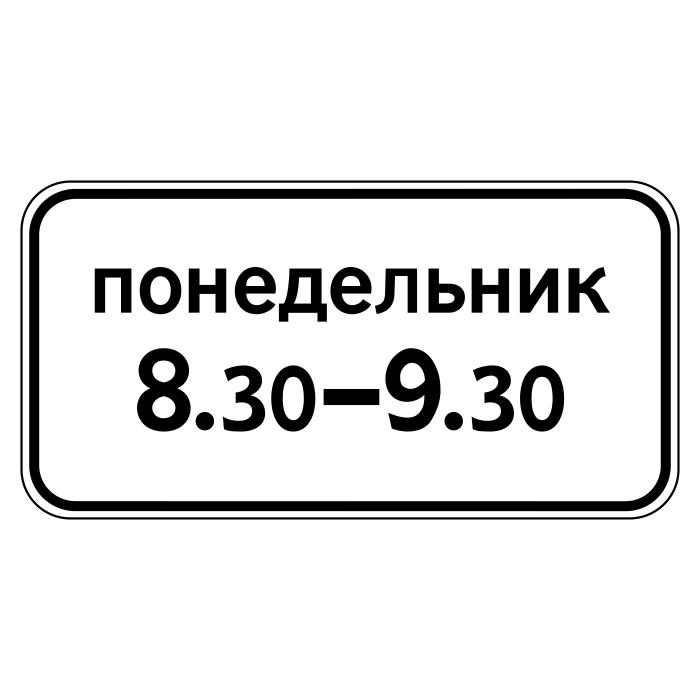 Дорожный знак 8.5.7 «Время действия» (металл 0,8 мм, I типоразмер: 300х600 мм, С/О пленка: тип Б высокоинтенсивная) в Твери купить