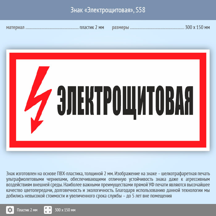 Знак (плакат) «Электрощитовая», S58 (пластик, 300х150 мм) в Твери купить