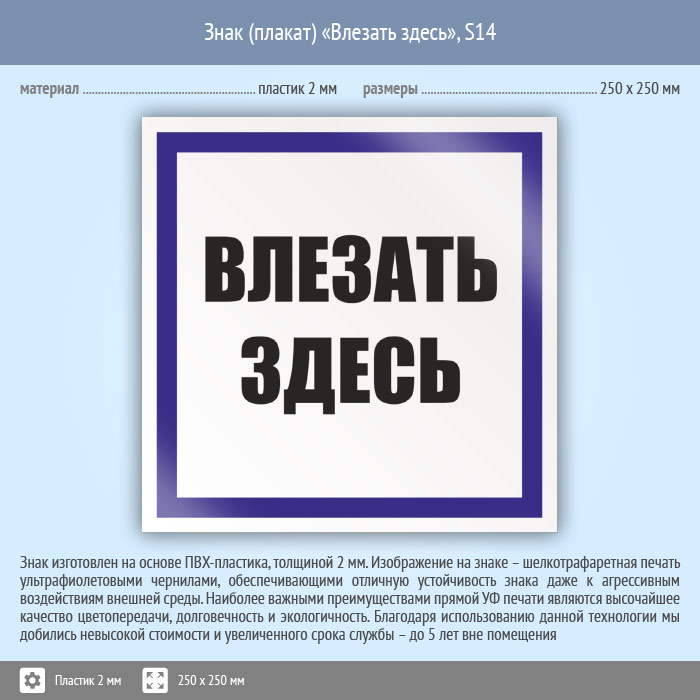 Знак (плакат) «Влезать здесь», S14 (пластик, 250х250 мм) в Твери купить