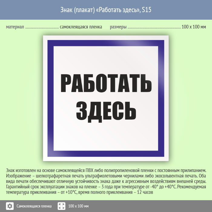 Знак (плакат) «Работать здесь», S15 (пленка, 100х100 мм) в Твери купить