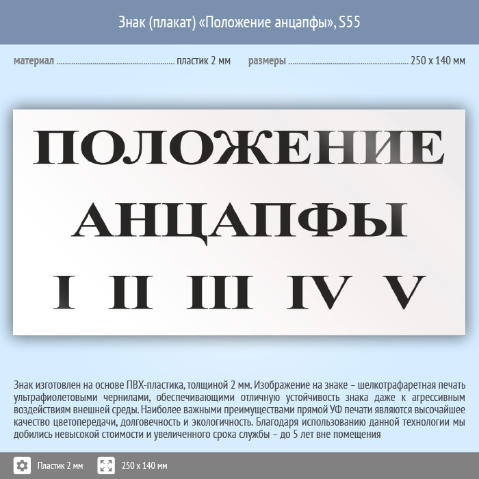 Знак (плакат) «Положение анцапфы», S55 (пластик, 250х140 мм) в Твери купить