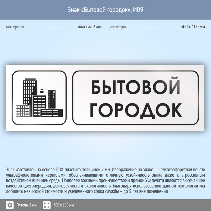 Знак «Бытовой городок», И09 (пластик, 300х100 мм) в Твери купить