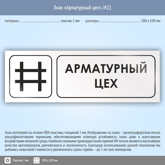 Знак «Арматурный цех», И11 (пластик, 300х100 мм) в Твери купить