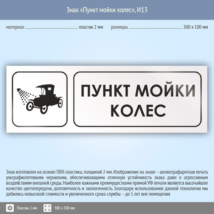 Знак «Пункт мойки колес», И13 (пластик, 300х100 мм) в Твери купить