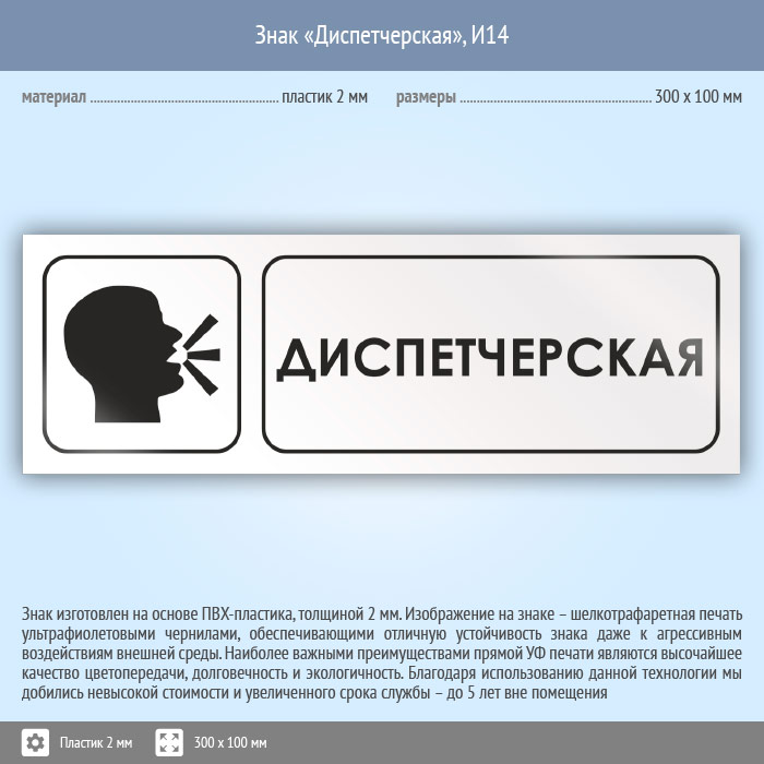 Знак «Диспетчерская», И14 (пластик, 300х100 мм) в Твери купить