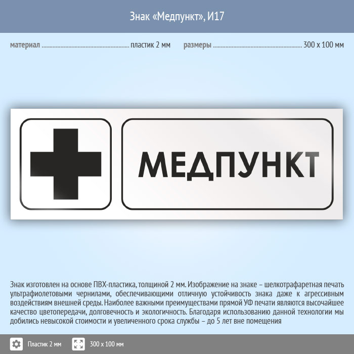Знак «Медпункт», И17 (пластик, 300х100 мм) в Твери купить